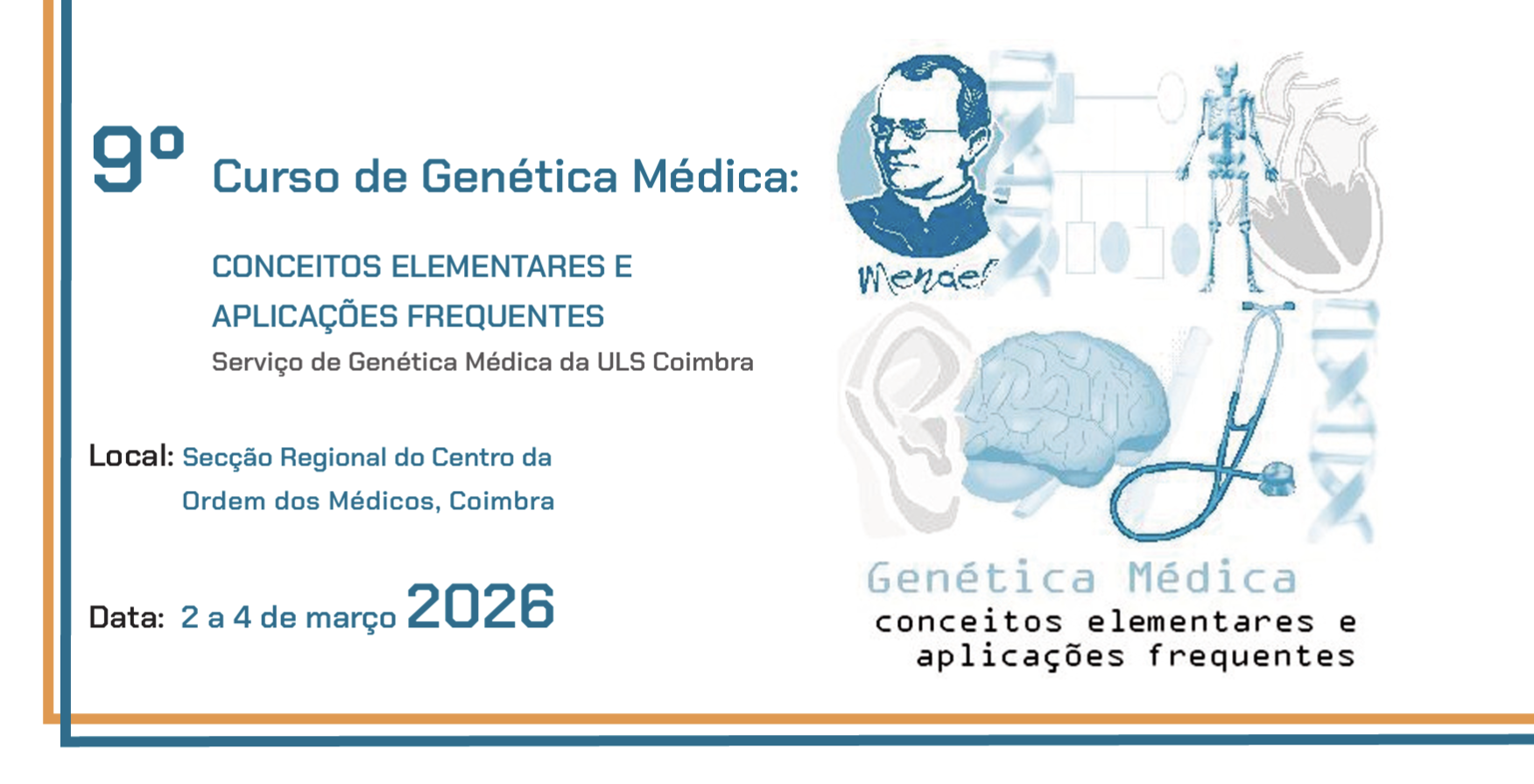 O Serviço de Genética Médica da ULS de Coimbra, com o secretariado da ASIC, vai realizar nos dias 2, 3 e 4 de março de 2026 o Curso «Genética Médica: conceitos elementares e aplicações frequentes».