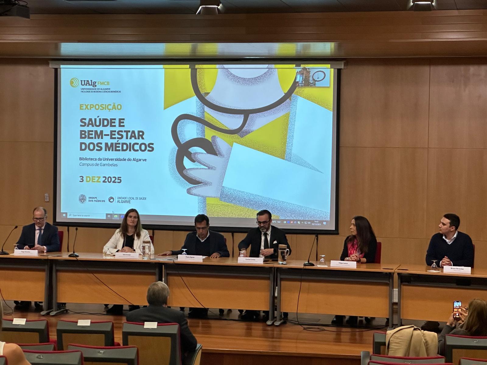 No âmbito da campanha “Saúde e Bem-Estar dos Médicos”, que o Gabinete Nacional de Apoio ao Médico (GNAM) tem vindo a desenvolver ao longo deste ano e que já percorreu Lisboa, Coimbra, Porto e Évora, a exposição está agora em Faro, na Faculdade de Medicina e Ciências Biomédicas da Universidade do Algarve (UALG). Esta iniciativa tem como objetivo contribuir para a valorização da saúde física, mental e emocional de todos os médicos para combater, prevenir, investigar e, ultimamente, intervir perante situações de violência, assédio e burnout. Os representantes da Ordem dos Médicos (OM) foram recebidos pelo reitor da UALG que deu lugar a uma reunião. De seguida aconteceu uma sessão de apresentação do GNAM onde se apresentou o Gabinete, a sua missão, estrutura e principais áreas de atuação, e vários momentos de debate que contaram com a intervenção de vários representantes e dirigentes da OM.
