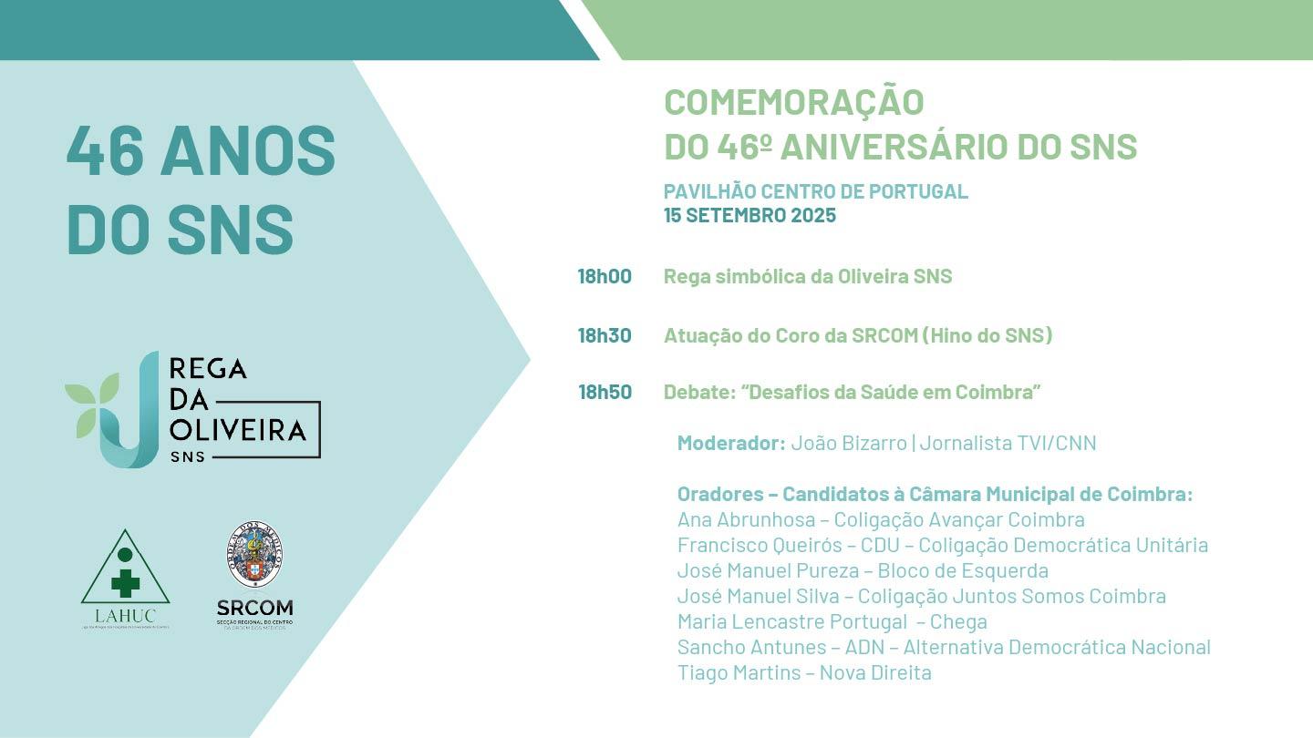 O evento, organizado pela Secção Regional do Centro da Ordem dos Médicos em parceria com a Liga dos Amigos dos Hospitais da Universidade de Coimbra, reunirá cidadãos, profissionais de saúde e representantes políticos num ambiente de partilha e homenagem ao papel fundamental que o SNS desempenha no nosso País.
