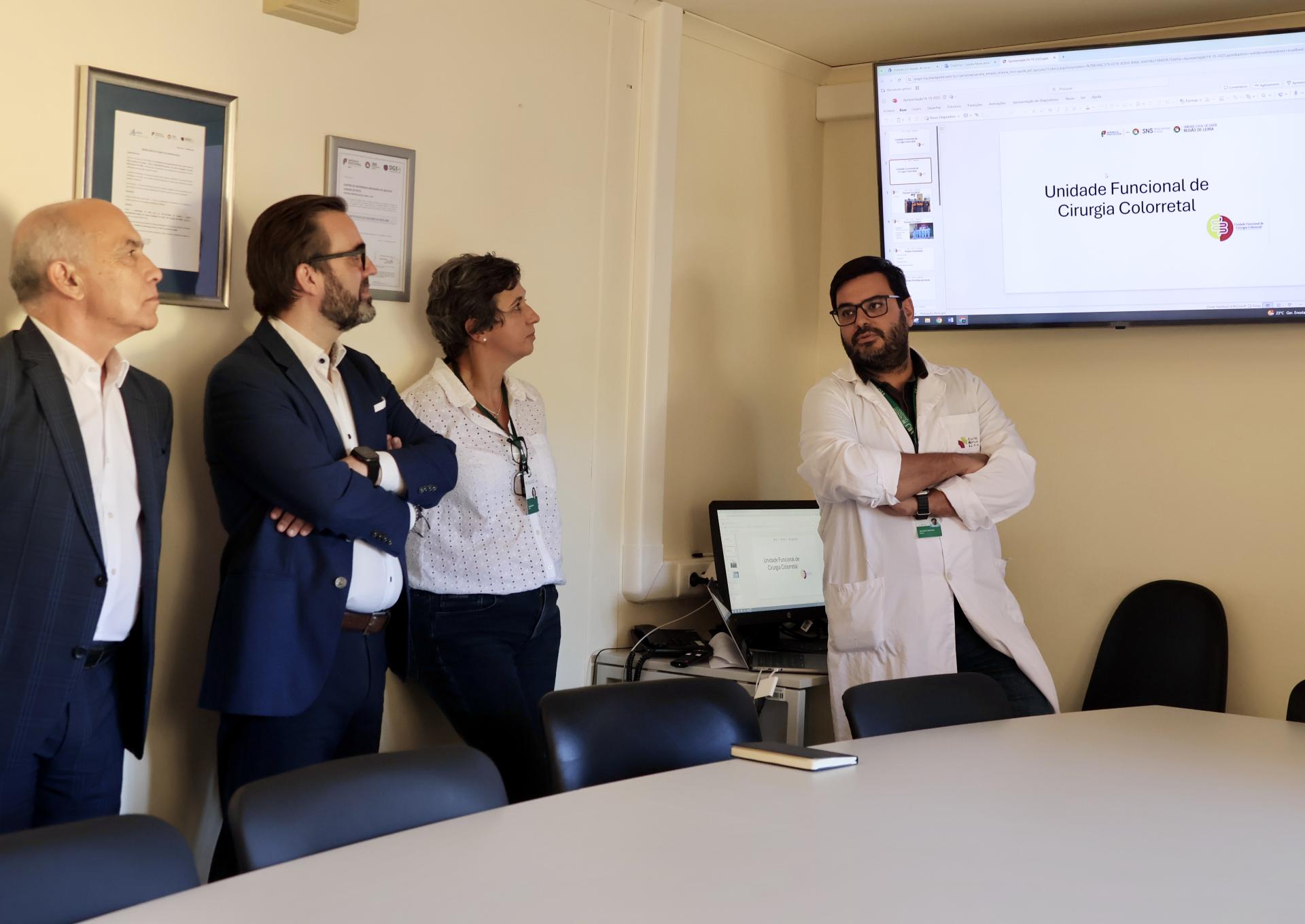 Carlos Cortes, Bastonário da Ordem dos Médicos (OM) visitou o Hospital Santo André, da ULS Região de Leiria, com o Presidente da Secção Regional do Centro da OM, Manuel Teixeira Verissímo e Vitor Pardal, presidente da Mesa da Assembleia Sub-regional da OM Leiria. Os dirigentes da Ordem conheceram as equipas multidisciplinares de vários serviços, projetos e investimentos em inovação e tecnologia. A comitiva da OM visitou os serviços de Urgência de Ginecologia e Obstetrícia, de Urgência Geral, de Cariologia e Hemodinâmica e de Cirurgia. No serviço de Cirurgia foi apresentado o trabalho desenvolvido nos Centros de Referenciação de Cancro Colo-Retal e Hepato-Bilio-Pancreático, que realçou o compromisso da unidade em investigação e ir ao encontro da excelência clínica no tratamento especializado em áreas de alto nível de complexidade do diagnóstico e tratamento do cancro.